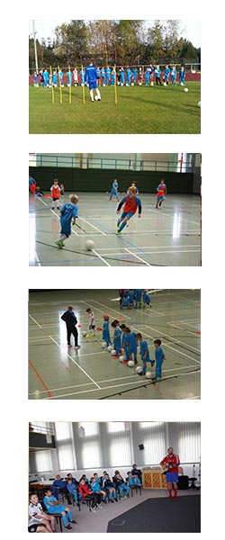 eingeteilt und trainieren von Dribbeln über Kopfball, Passen, Torschuss, Torwart- und